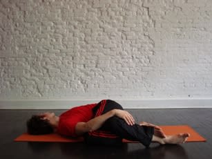 While lying on the back, the feet have to be pulled right behind the hip. After this, one leg has to be rested sideways, while the other leg has to be gradually moved towards the resting leg and wrapped around it.