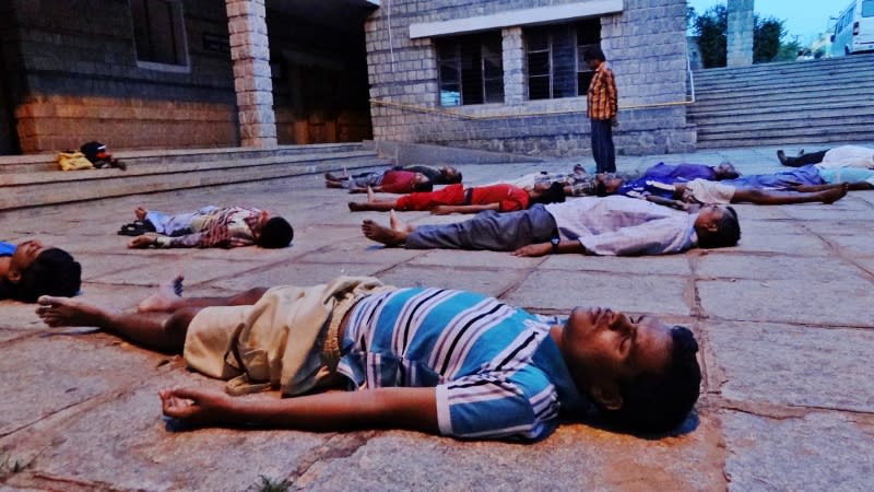 As you can see in image, initially the practice started on floor without yoga mat and after fundraising and donations; today, each student has his own yoga mat. If you want to contribute in this humble cause, you can donate by visiting Szymon’s website.